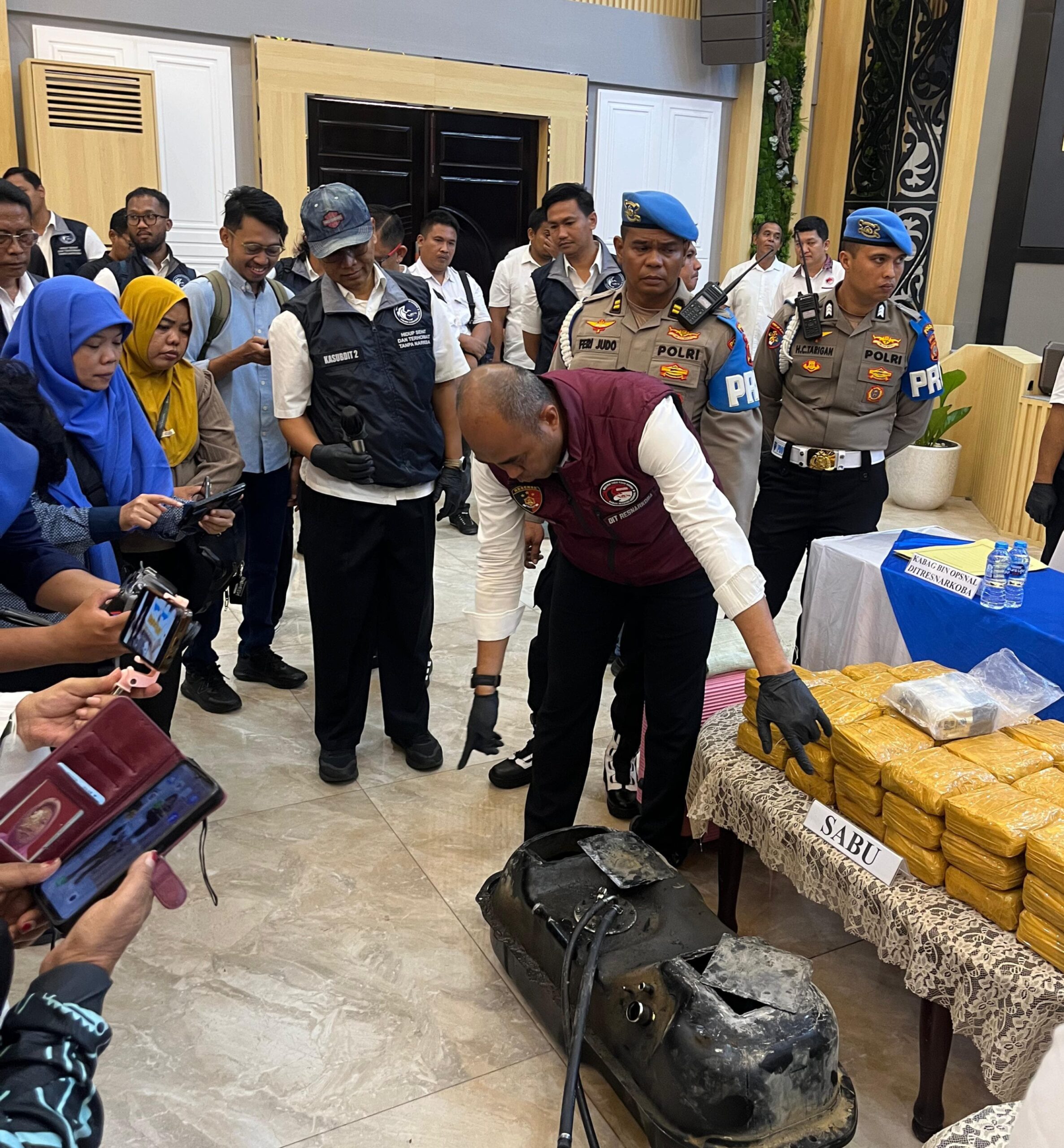 Dalam pengungkapan itu, polisi turut mengamankan barang bukti berupa 22 bungkus sabu yang disembunyikan secara rapi di dalam tangki bahan bakar minyak (BBM) sebuah mobil double cabin. Modus tersebut dilakukan dengan cara memodifikasi tangki kendaraan menjadi tiga kompartemen tersembunyi.